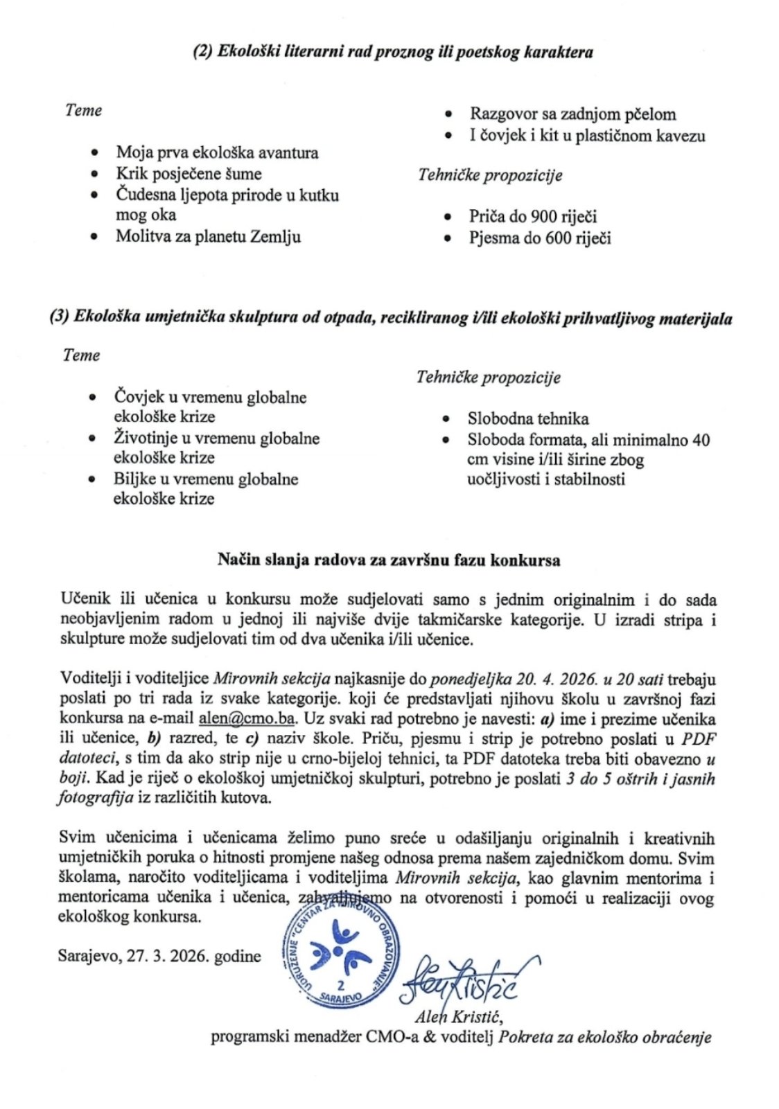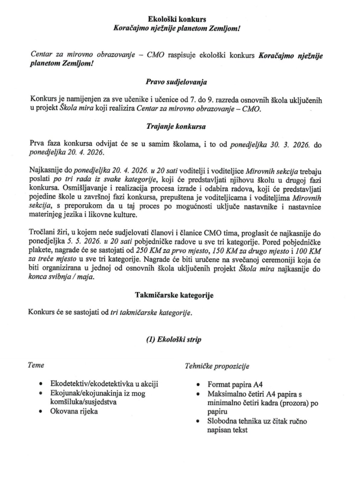 Ekološki natječaj “Koračajmo nježnije planetom Zemljom”