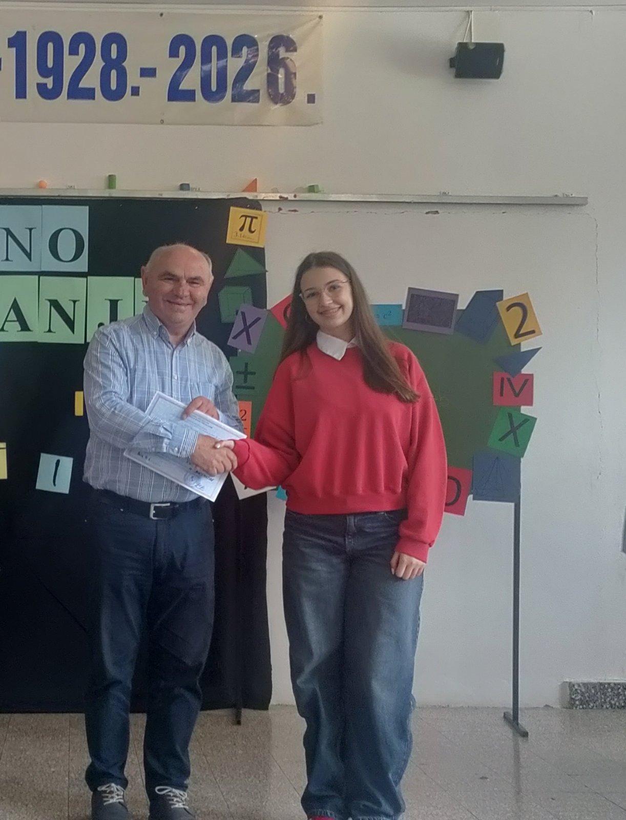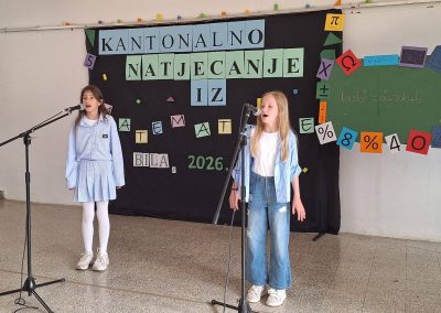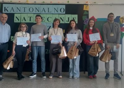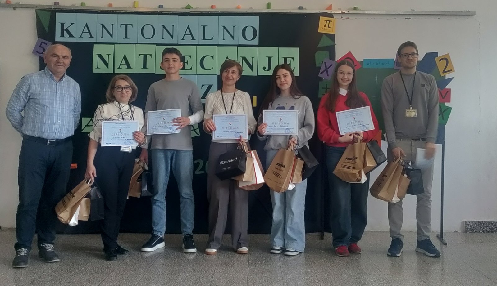 Danas je u našoj školi uspješno održano kantonalno natjecanje iz matematike za učenike 9. razreda. Na natjecanju je sudjelovalo 45 učenika iz 17 škola našeg kantona koje nastavu izvode na hrvatskom jeziku.