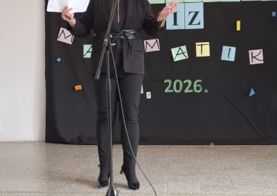 Natjecanje je započelo prigodnim programom dobrodošlice koji su pripremili učenici naše škole. Program je otvorio zbor učenika 4.a razreda koji je sve prisutne pozdravio pjesmom „Dobar dan“. Nakon toga, ravnatelj škole Vinko Bošnjak i nastavnica Julijana Omazić uputili su riječi dobrodošlice svim natjecateljima i njihovim mentorima, poželjeli im uspjeh i ugodan boravak u našoj školi. Priredbu su uljepšale i učenice 3.a razreda, Eva i Katja, koje su izvele pjesmu „Matematika“, čime je program svečano priveden kraju.