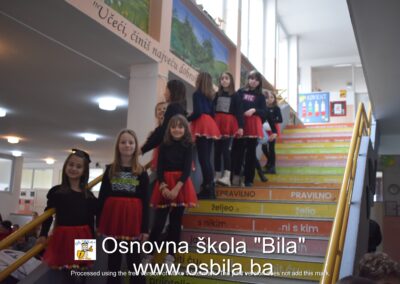 Priredba je započela zborom učenika drugih i četvrtih razreda. Naši najmađi učenici su recitirali i pjevali, a s recitacijom su se predstavili i učenici trećeg razreda. Ritmička sekcija za današnji dan pripremila je učenice trećeg i petih razreda, a za kraj se predstavio i zbor petih razreda.