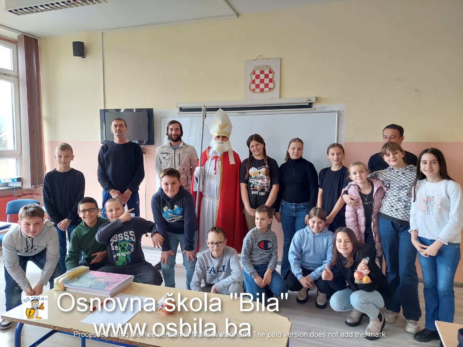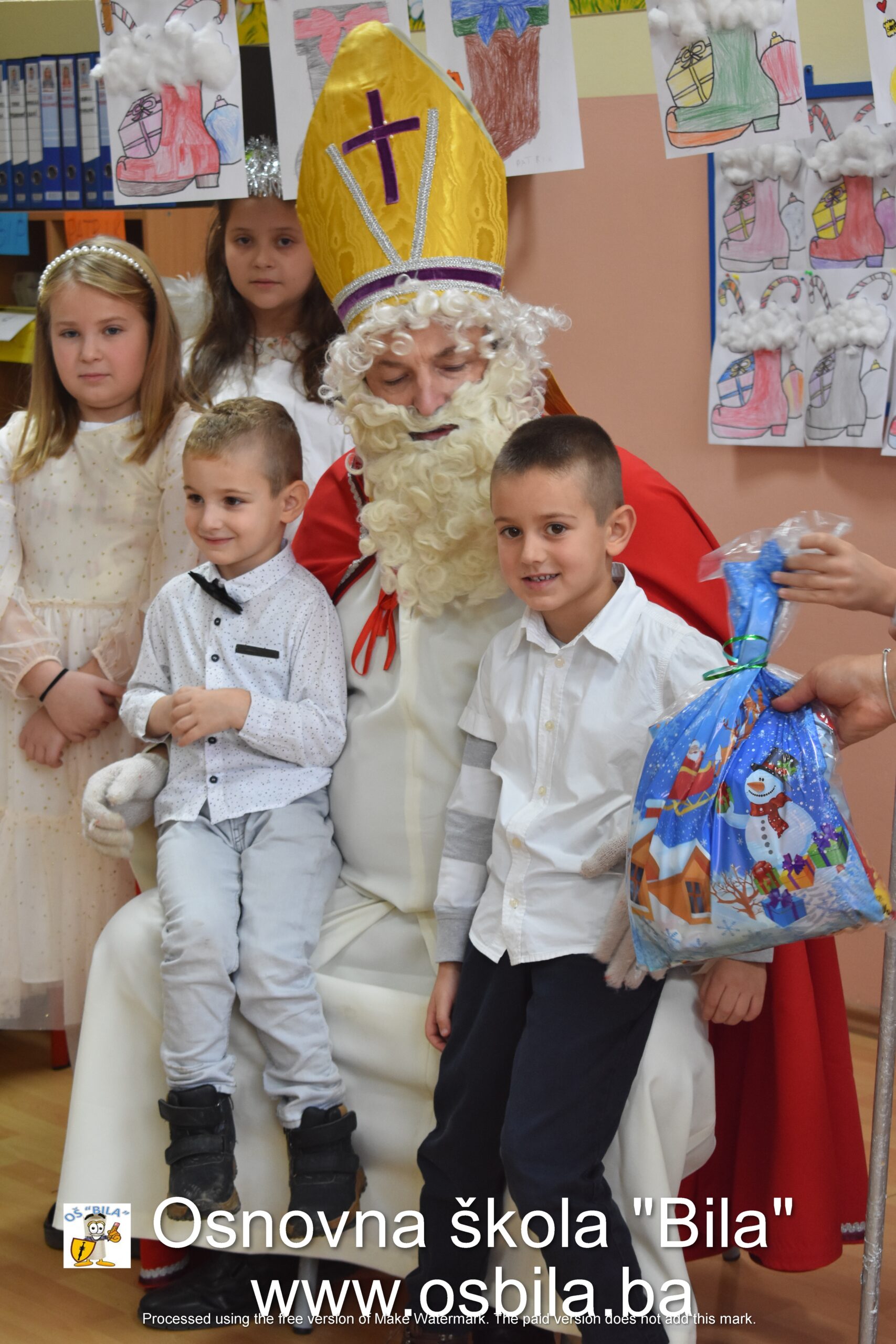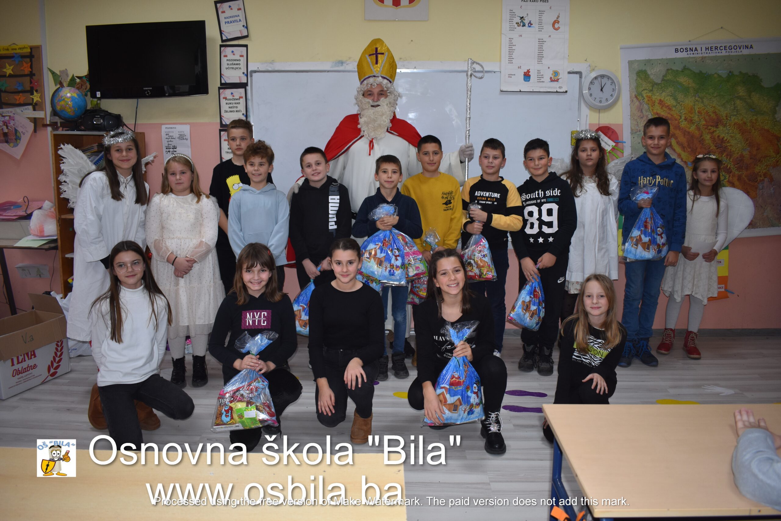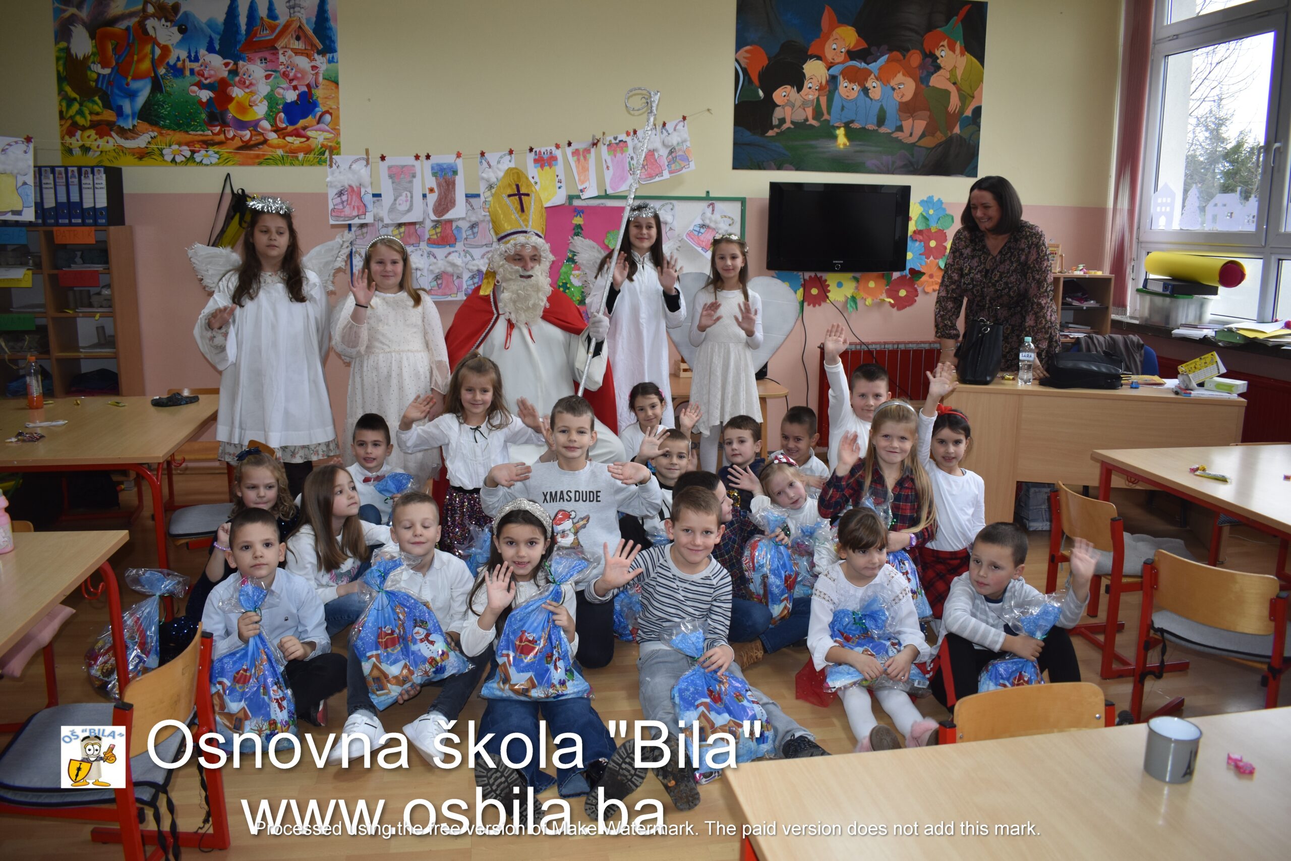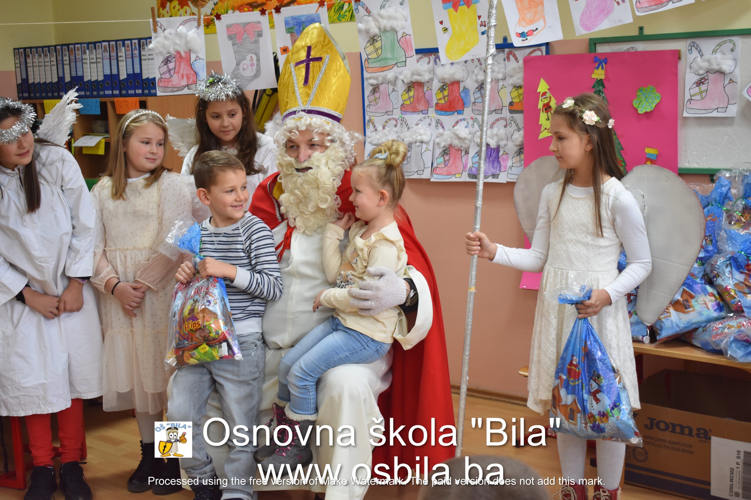 Danas je u našoj školi bilo svečano od samog jutra. Cijeli dan naši su učenici iščekivali dolazak svetog Nikole koji je od jutra obilazio naše učenike kako bi svakog učenika darivao prigodnim poklonom. Za velike učenike sveti je Nikola ponio dovoljno jabuka, mandarina i bombona koje je podijelio.