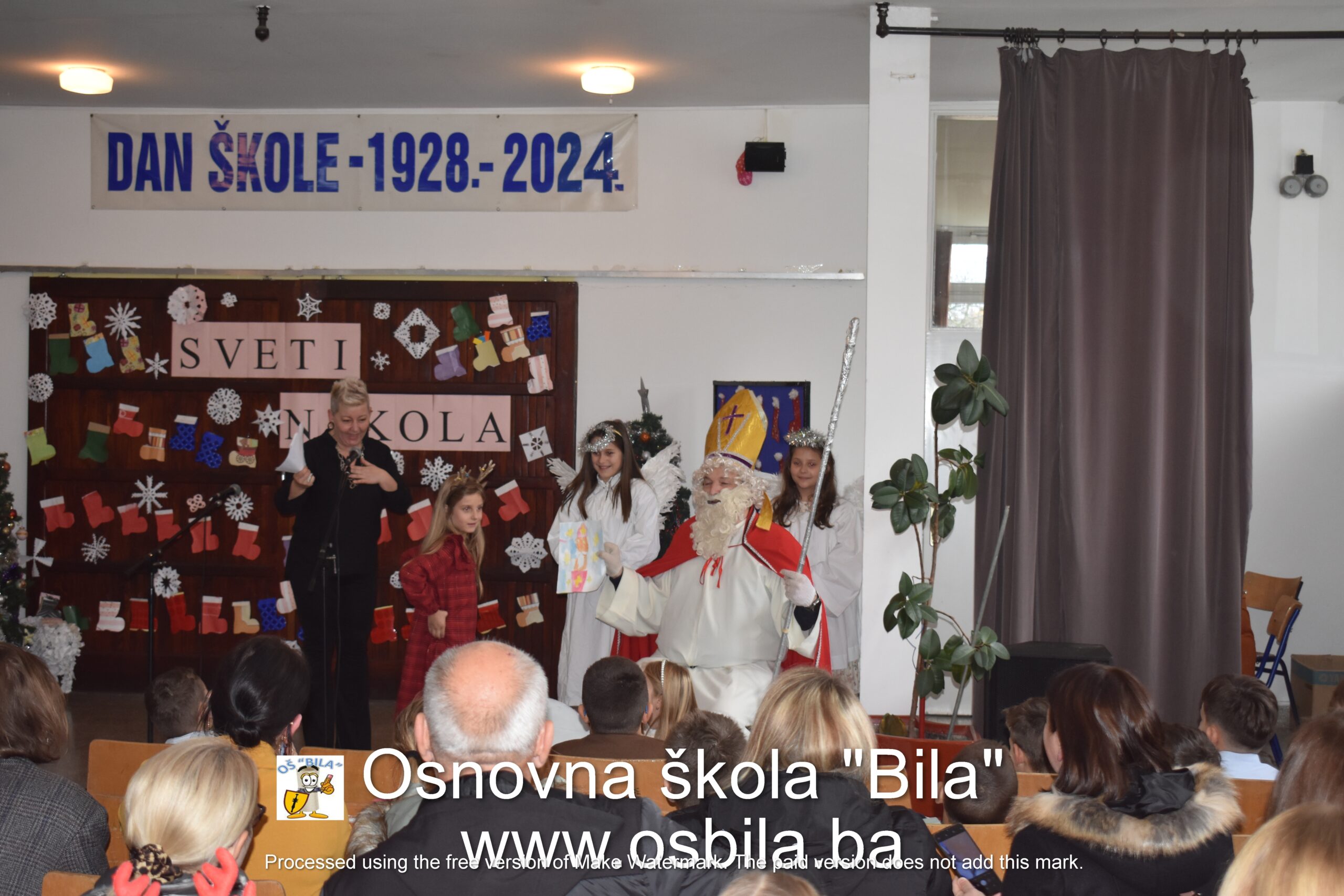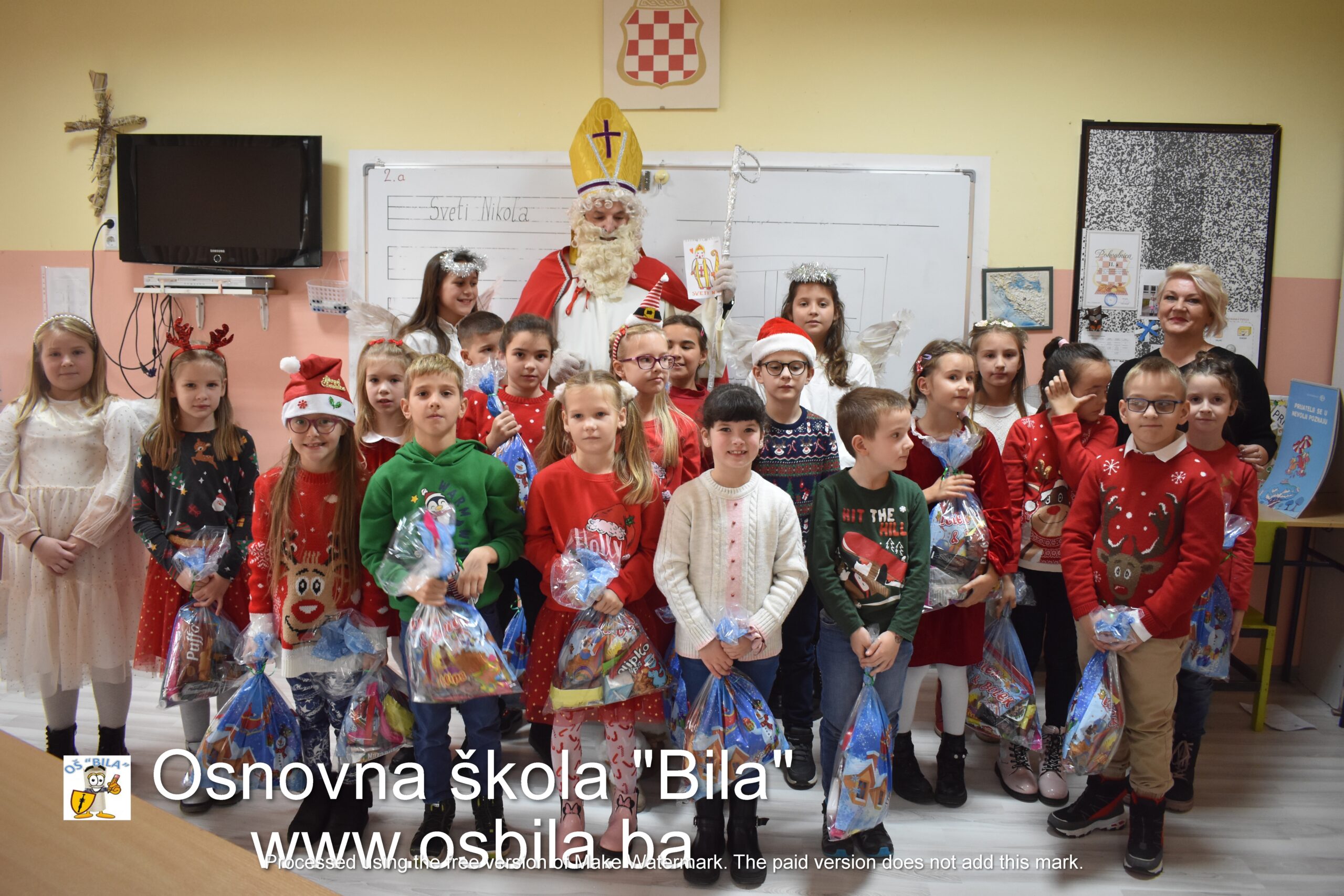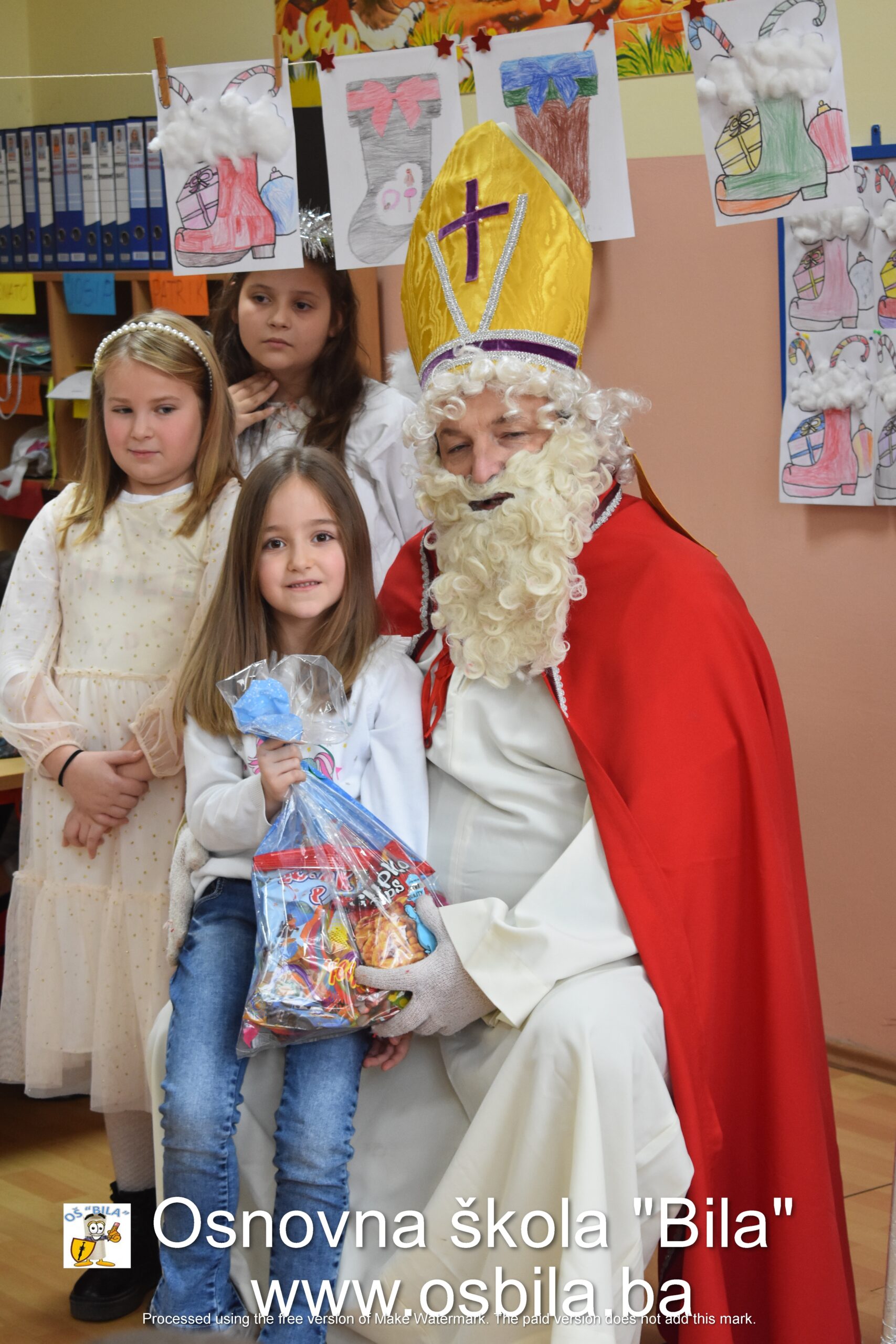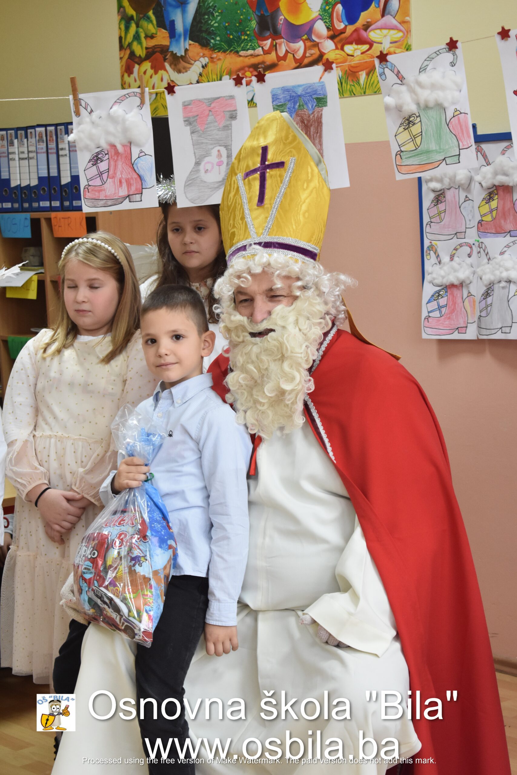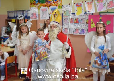 Danas je u našoj školi bilo svečano od samog jutra. Cijeli dan naši su učenici iščekivali dolazak svetog Nikole koji je od jutra obilazio naše učenike kako bi svakog učenika darivao prigodnim poklonom. Za velike učenike sveti je Nikola ponio dovoljno jabuka, mandarina i bombona koje je podijelio.