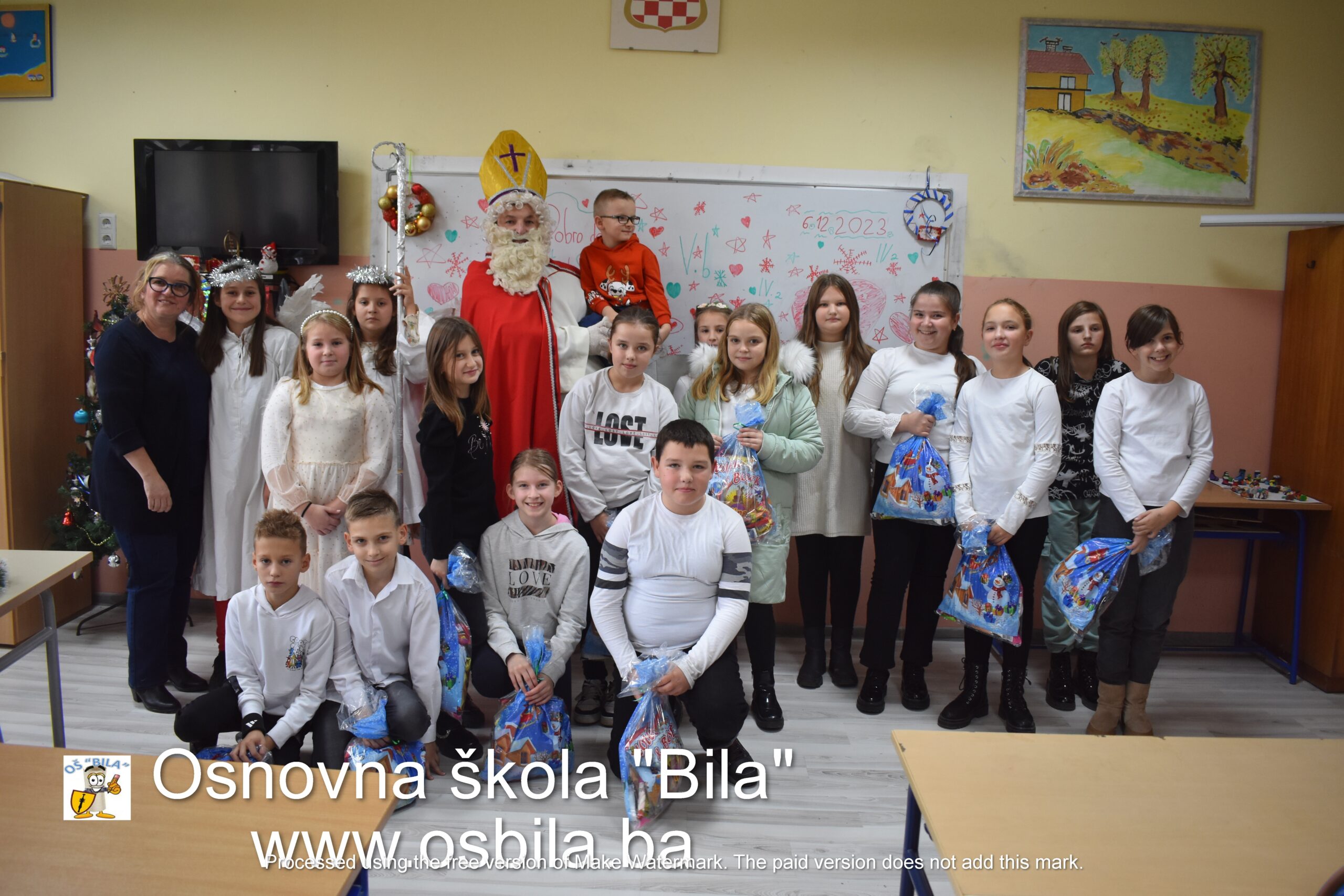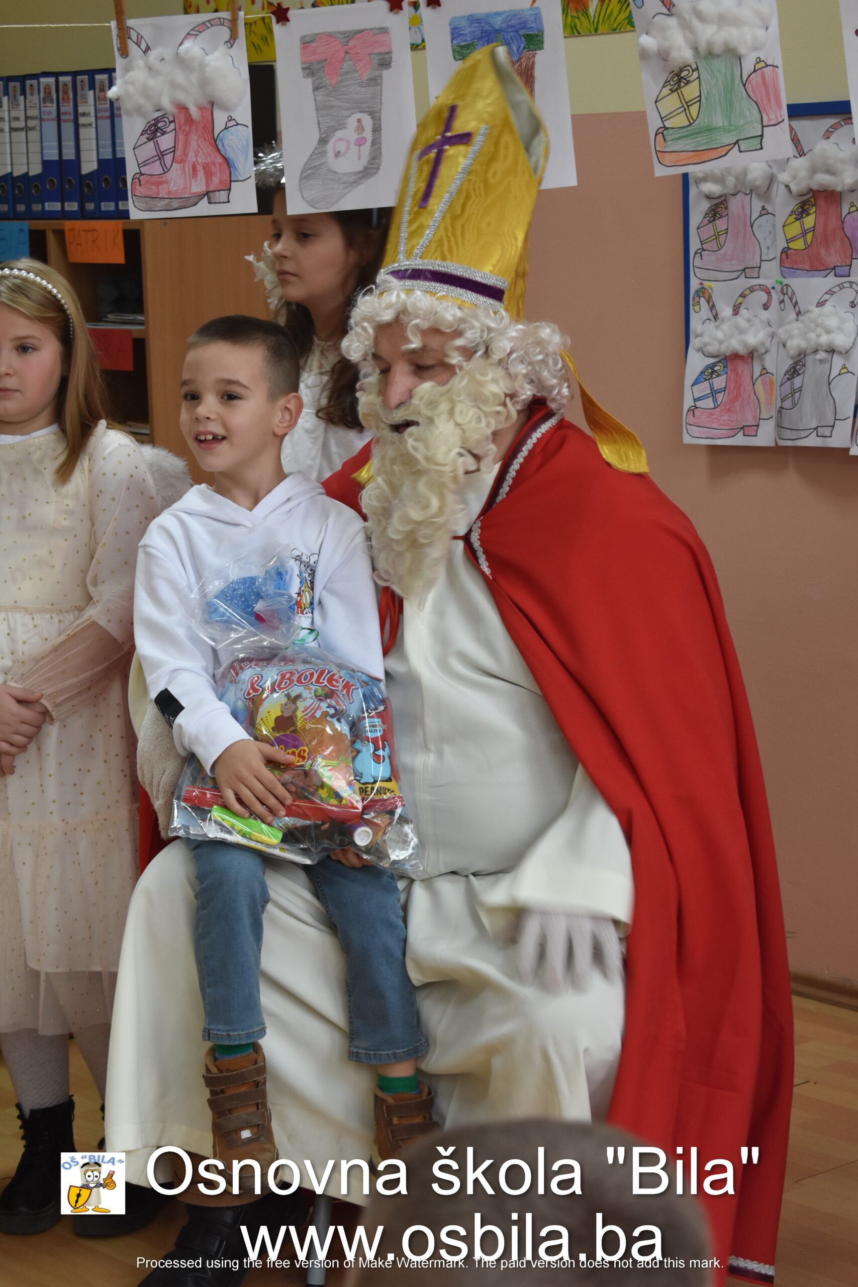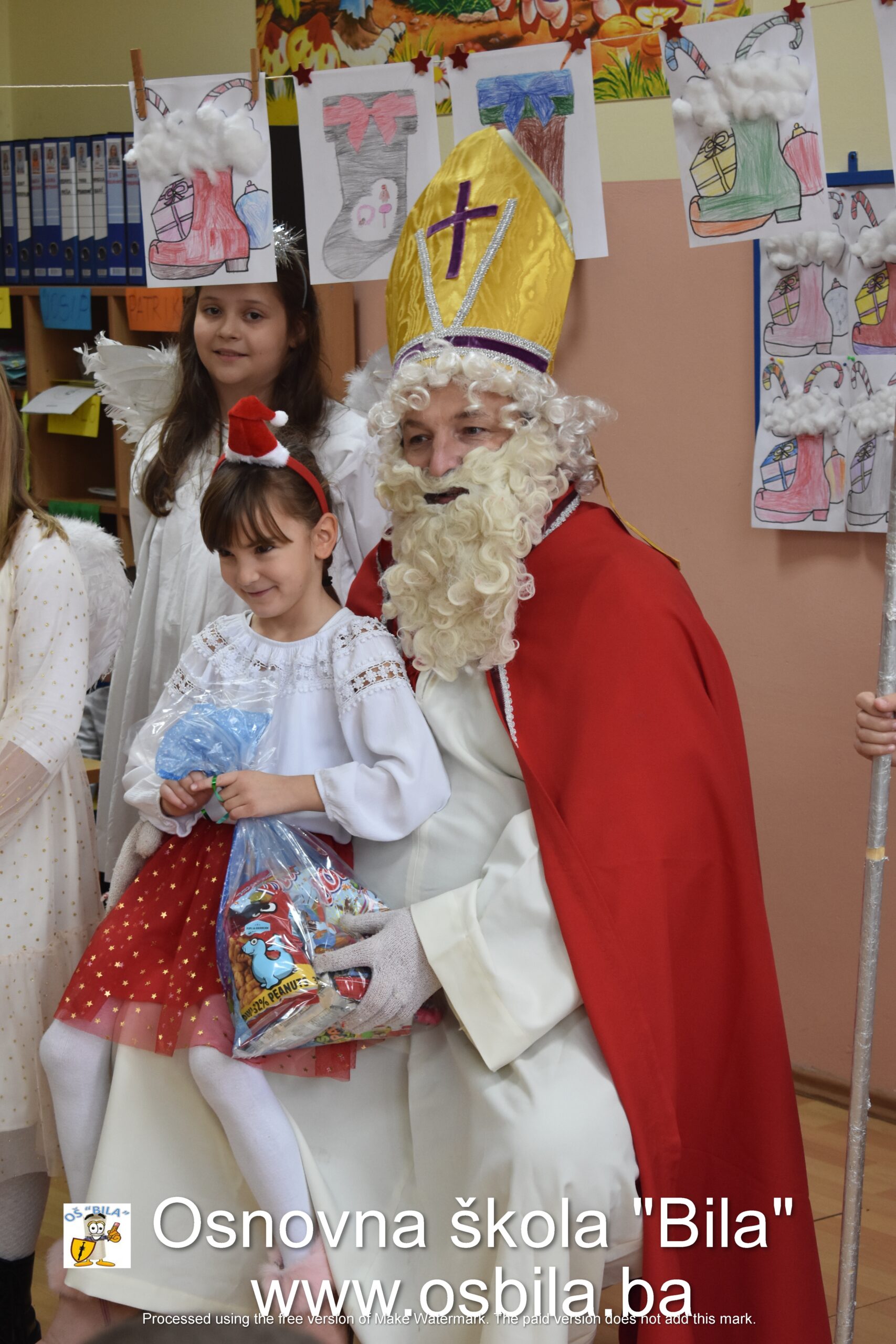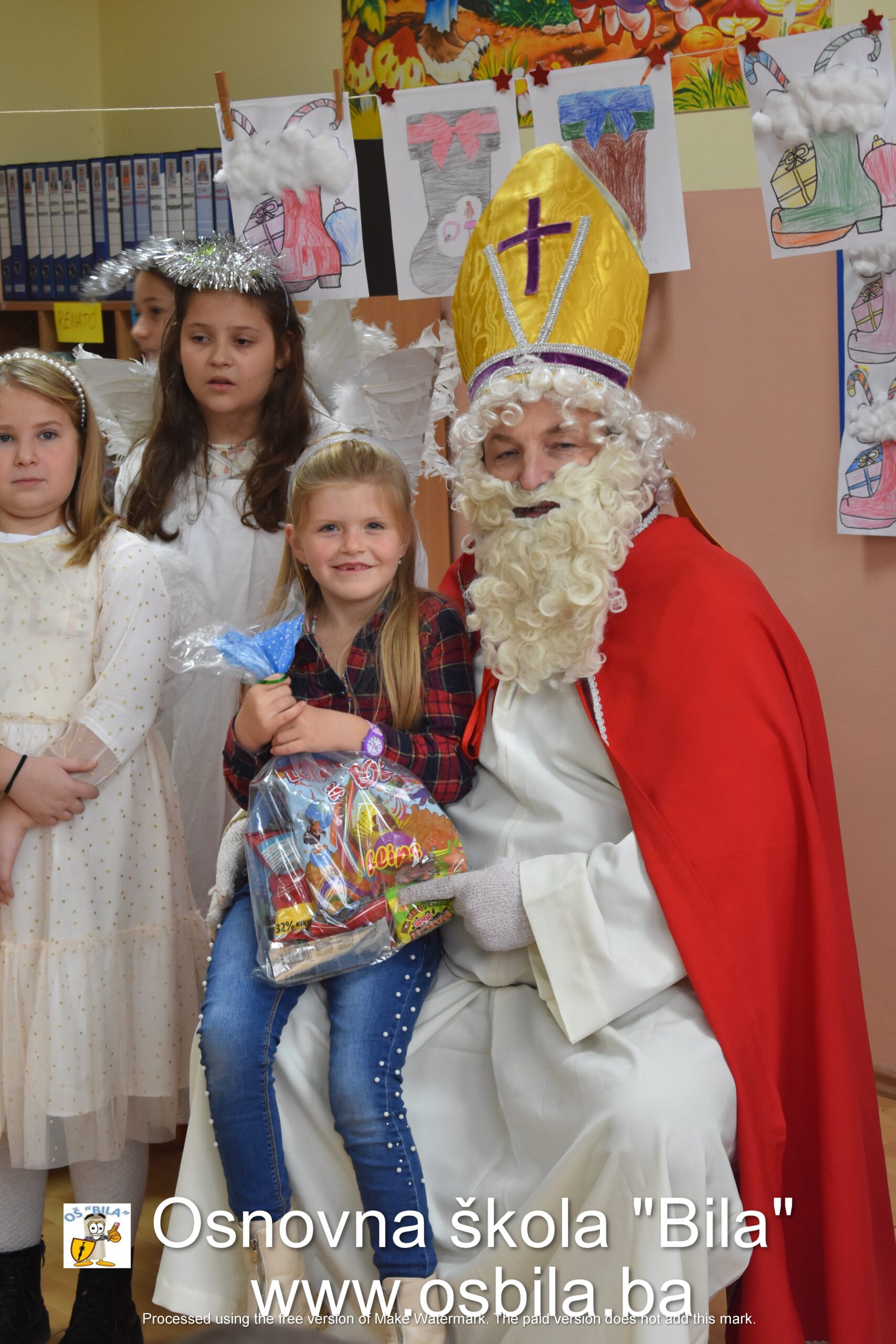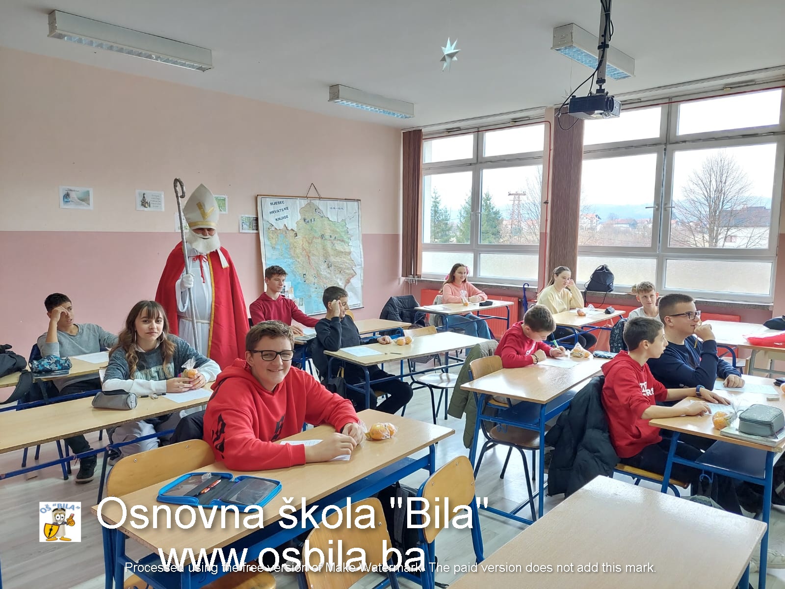 Danas je u našoj školi bilo svečano od samog jutra. Cijeli dan naši su učenici iščekivali dolazak svetog Nikole koji je od jutra obilazio naše učenike kako bi svakog učenika darivao prigodnim poklonom. Za velike učenike sveti je Nikola ponio dovoljno jabuka, mandarina i bombona koje je podijelio.