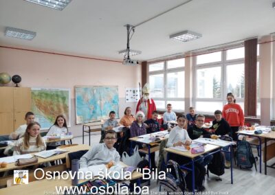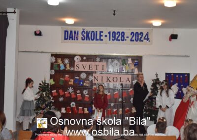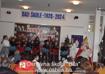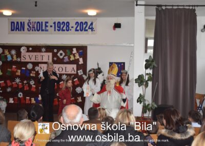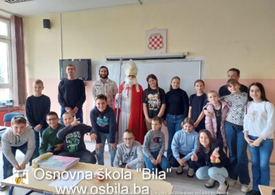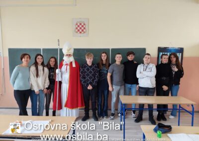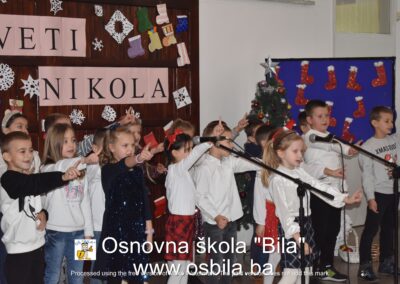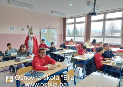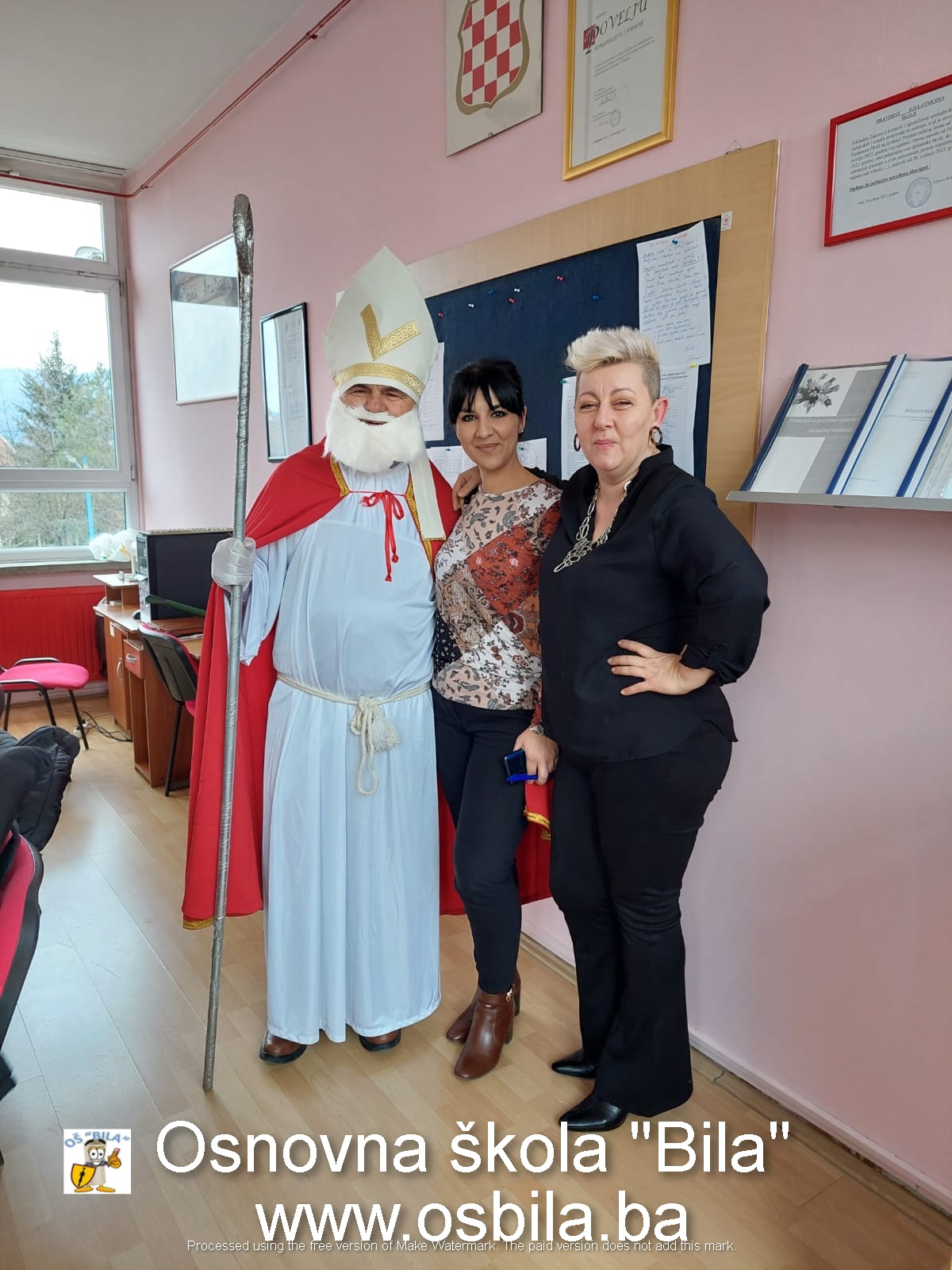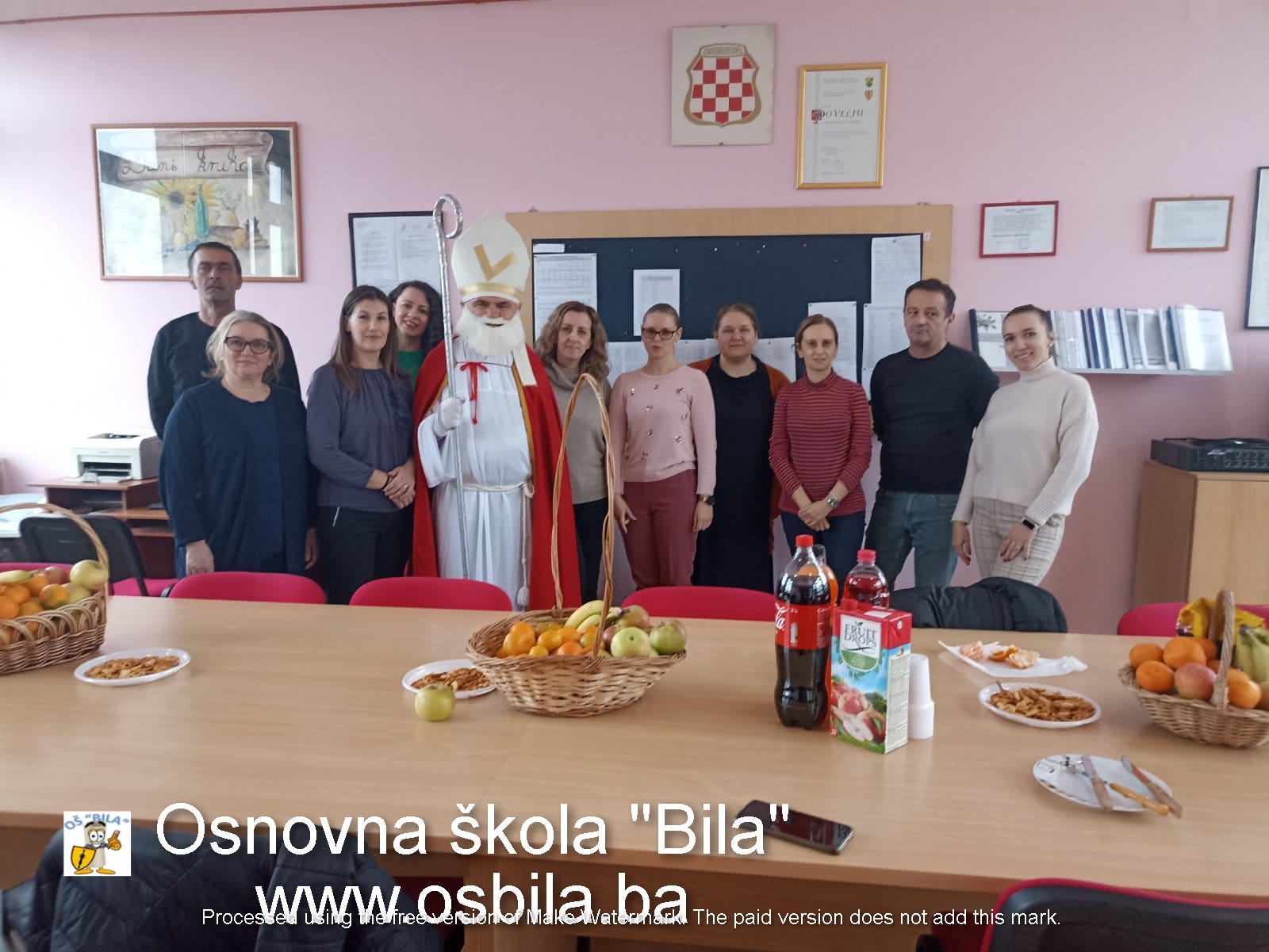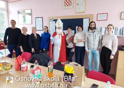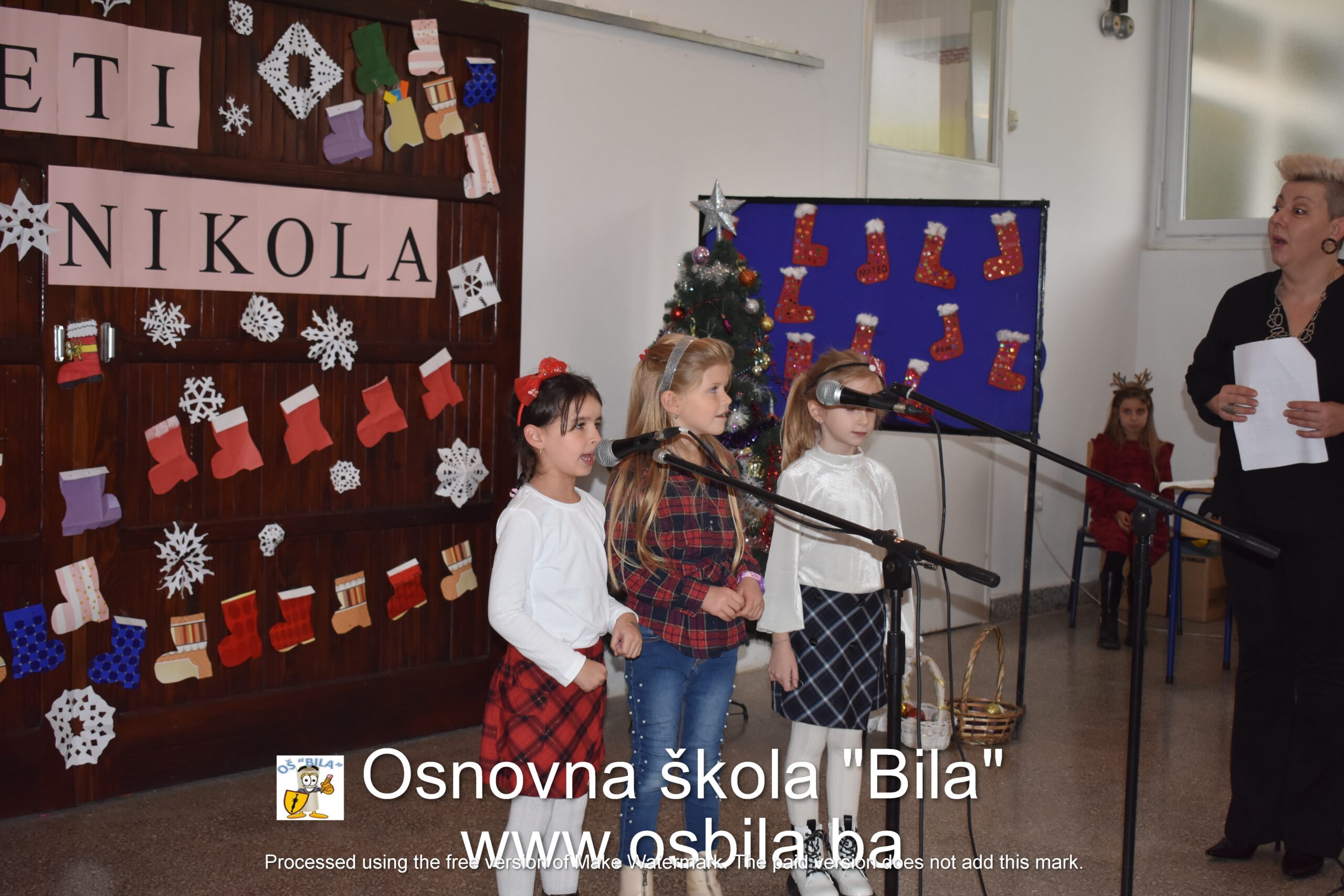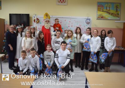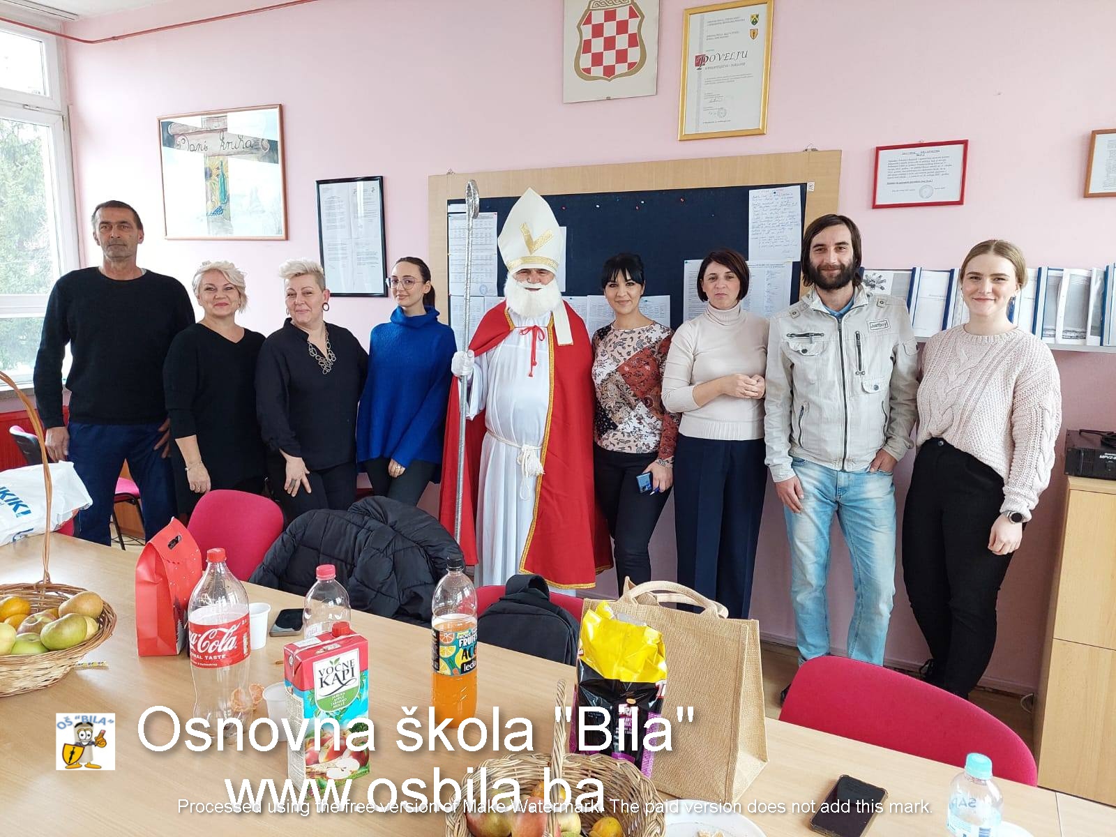 Danas je u našoj školi bilo svečano od samog jutra. Cijeli dan naši su učenici iščekivali dolazak svetog Nikole koji je od jutra obilazio naše učenike kako bi svakog učenika darivao prigodnim poklonom. Za velike učenike sveti je Nikola ponio dovoljno jabuka, mandarina i bombona koje je podijelio.