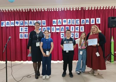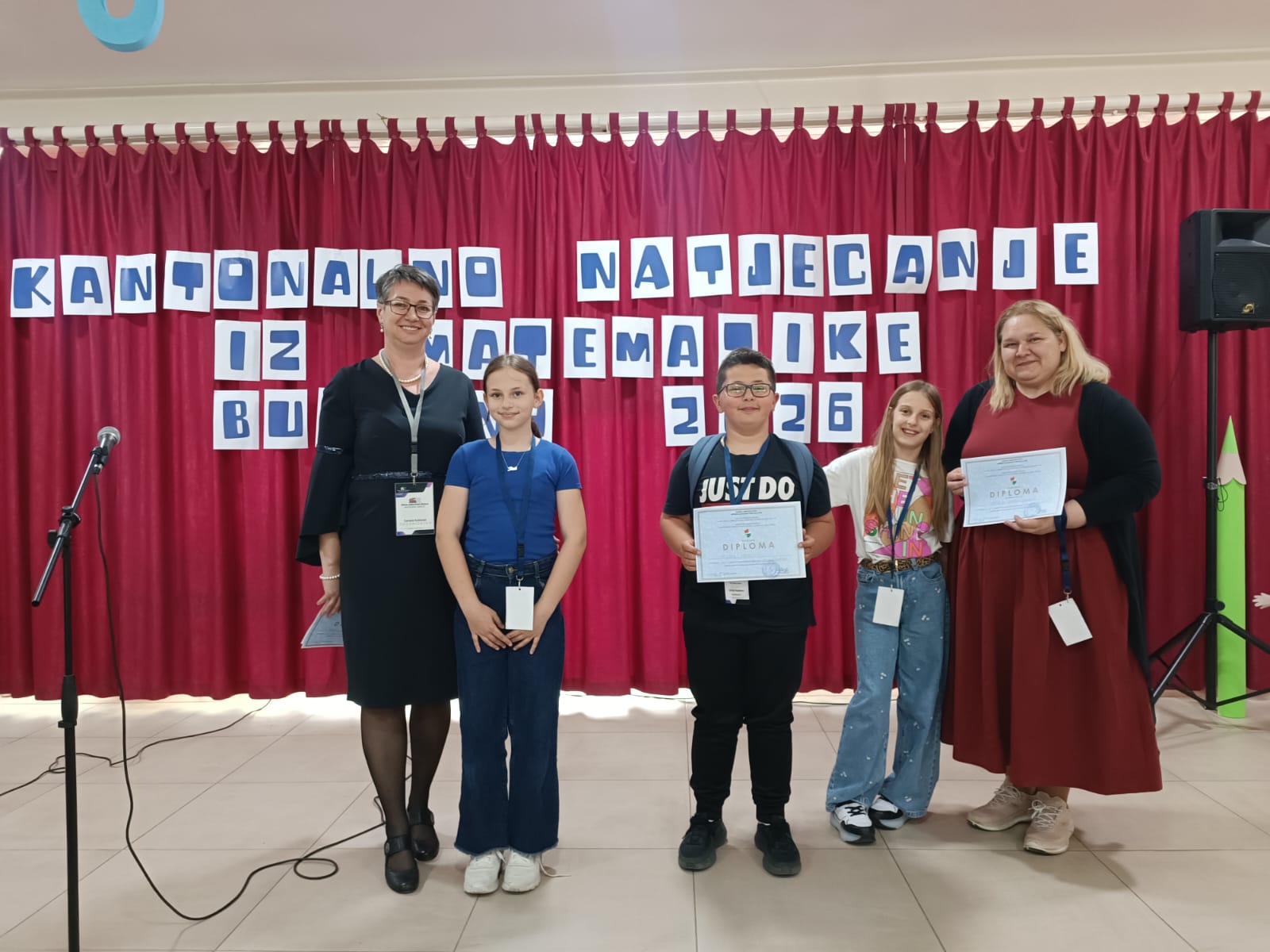 Našu školu predstavljali su učenici Ivanela Šarić, Tina Štrbac i Josip Kesten, koji su pravo sudjelovanja izborili ostvarivši najbolje rezultate na Školskom natjecanju. Uz podršku svoje mentorice, učiteljice Kristine Katava-Mlakić, dostojno su predstavili našu školu.
